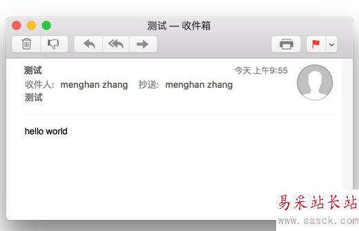 這里將發件人的名字和郵件標題都改為了'測試',收到的郵件效果為