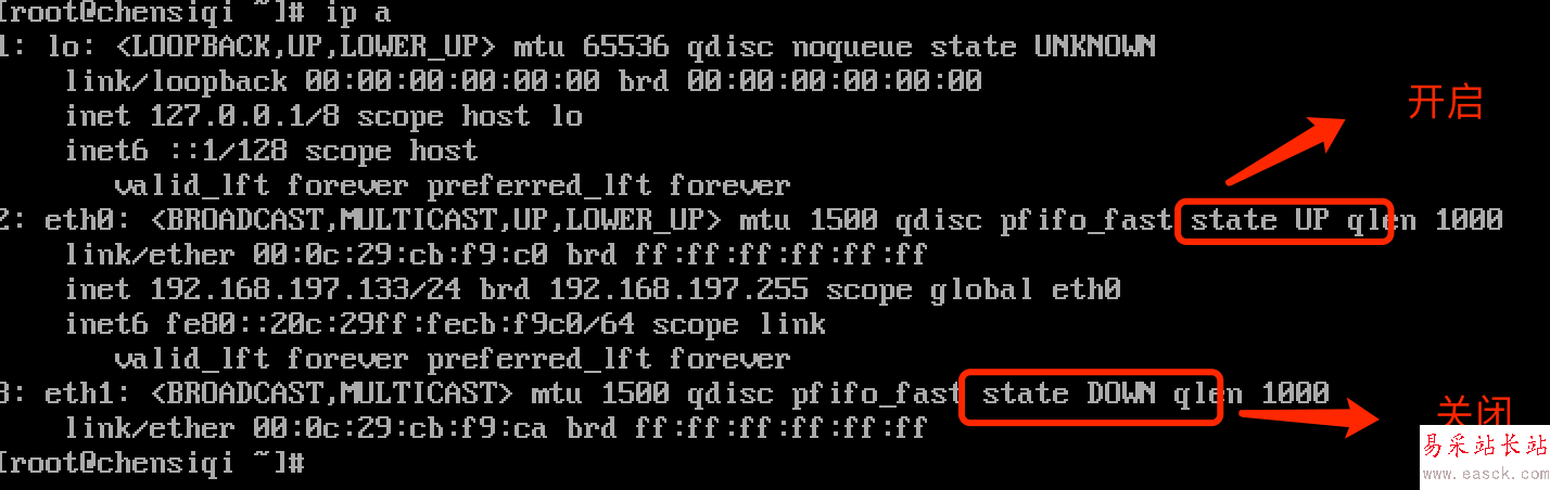 方法二:ifconfig +網卡名(ethx)+ up 也可以開啟設備
