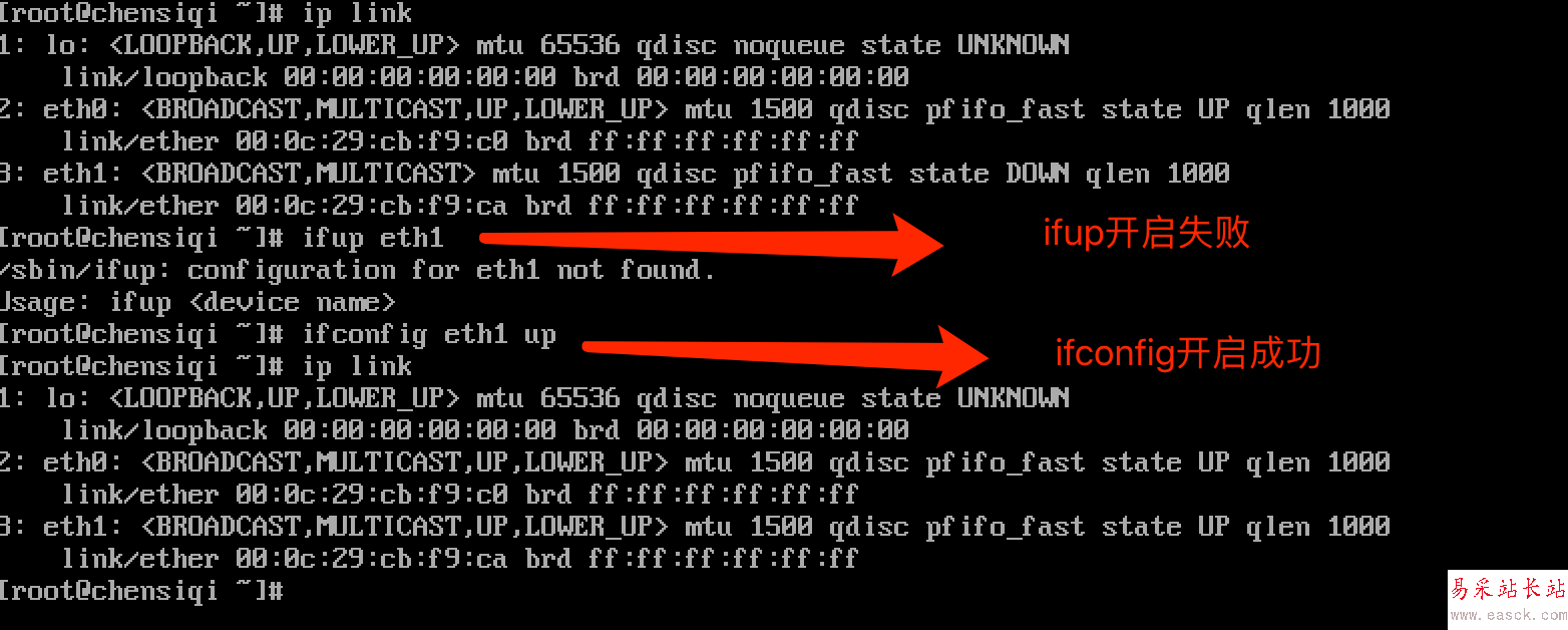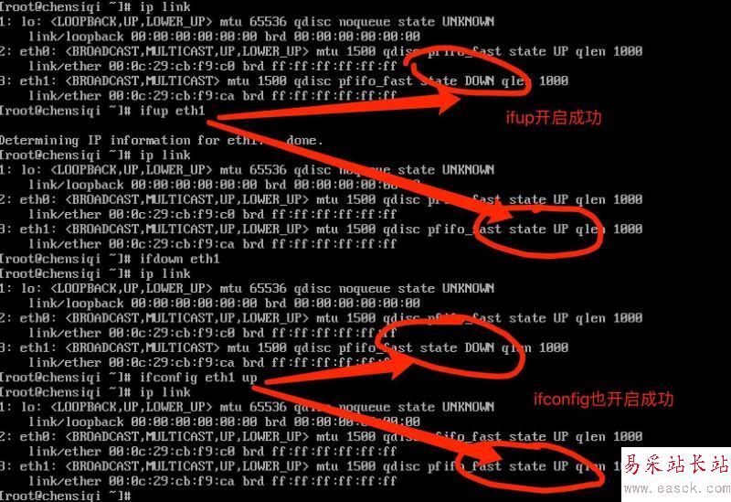 方法一:ifup + 網卡名(ethx) 可以開啟設備