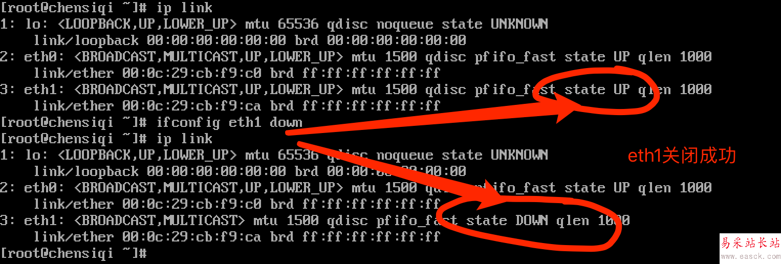 第二步,我們關閉eth1這個網卡設備