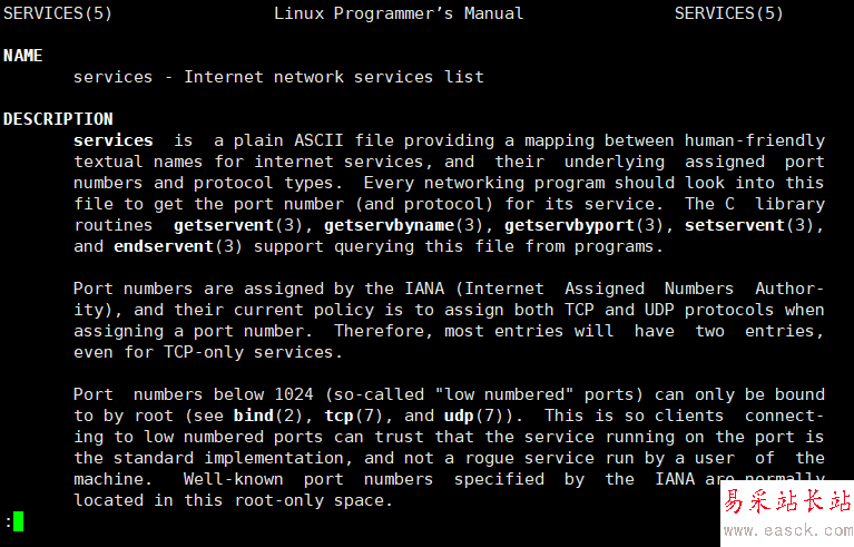 注意查看配置文件不需要加上絕對路徑,如果是 man /etc/services,那么顯示的就是services的文件內容。