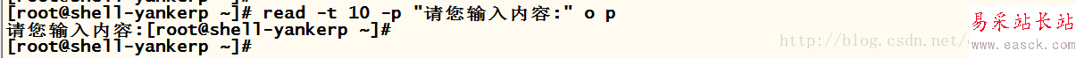 剖析:上圖使用了read命令 -t是輸入等到時間為10秒,那么-p就是提示的信息,在后面我們加了 o p 也就是說,當用戶輸入內容時 他會把內容賦值給變量 o p;