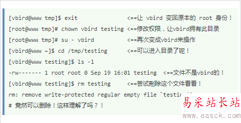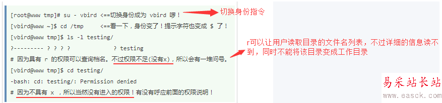 注意:要開發目錄給任何人瀏覽時,應該至少要給予r和x權限,w不可以隨便給;x在目錄中與能否進入該目錄有關