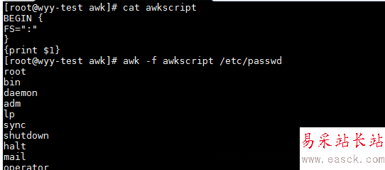vim awkscriptBEGIN {FS=":"}{print $1}awk -f awkscript /etc/passwd #通過調用awk指令文件來執行awk命令