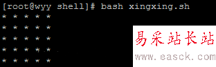 #!/bin/bashi=1j=1while [ $i -le 5 ]do while [ $j -le 5 ] do echo -n "* " let j++ done echo let i++ let j=1done