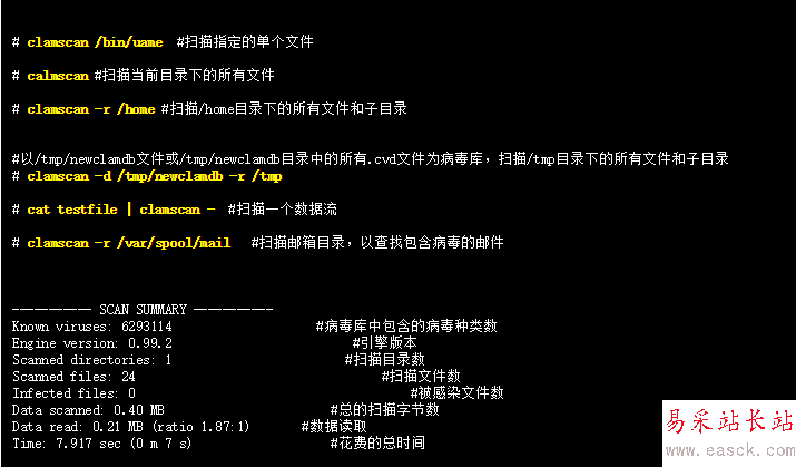 以上所述是小編給大家介紹的clamscan-Linux查毒工具的命令詳解,希望對大家有所幫助,如果大家有任何疑問請給我留言,小編會(huì)及時(shí)回復(fù)大家的。在此也非常感謝大家對武林站長站網(wǎng)站的支持!