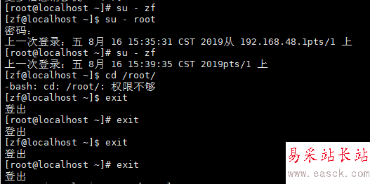 反之低權限切換到高權限用戶需要高權限用戶的密碼