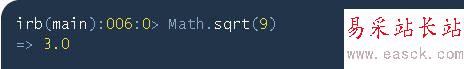 Math是Ruby內建的數學模塊。在Ruby中,模塊提供了兩種角色:一種角色是將類似的方法聚集在同一個“家族”名下。因此,Math也包括sin、tan這樣的方法。第二種角色是一個圓點(dot),它標記了消息的接收者。什么是消息?在上面的例子中,sqrt(9)便是消息,它意味著調用sqrt方法取出9的平方根。