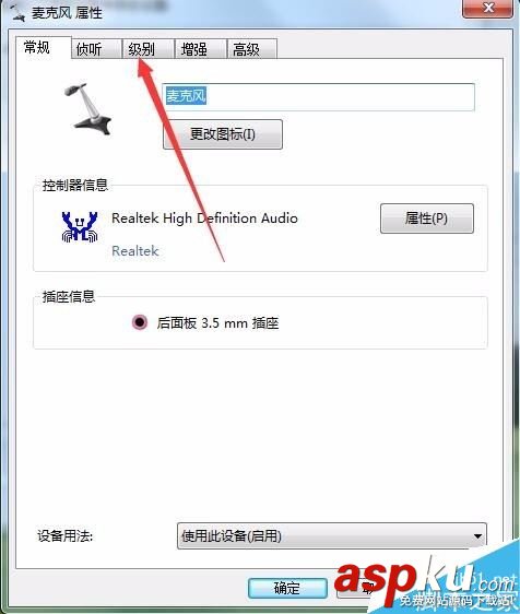 同樣在麥克風屬性窗口中,點擊“級別”標簽。