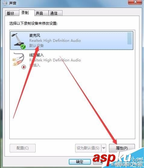 在錄制窗口中,點擊“麥克風”一項,然后點擊右下角的“屬性”按鈕 。
