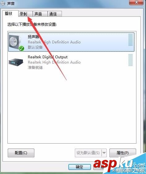 接著點擊聲音設置窗口中的“錄制”標簽。