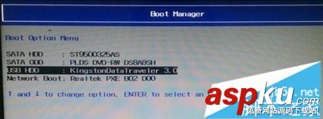 1、插入U(xiǎn)盤(pán)啟動(dòng)盤(pán),重啟系統(tǒng),按下啟動(dòng)熱鍵F12選擇USB選項(xiàng)按回車(chē)鍵,電腦啟動(dòng)熱鍵匯總;