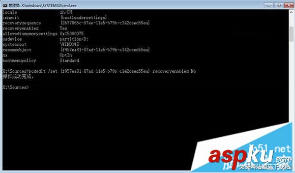 5、輸入bcdedit /set {resumeobject字符串} recoveryenabled No,回車(chē)執(zhí)行,暫時(shí)停止系統(tǒng)自帶的自動(dòng)修復(fù)功能;