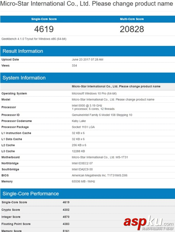 此外,這款i7的參數還顯示,依然是LGA1151插槽,其運行在3.89GHz主頻下(之前消息稱,六核Coffee Lake的默認主頻是3.5GHz),最大睿頻速度為4300MHz,有6x256KB的L2和12MB的L3。