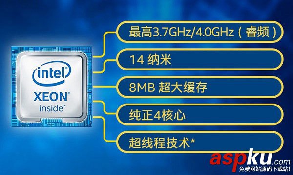 Xeon E3-1270:四核心,八線程,主頻3.4GHz,動態加速最高3.8GHz,三級緩存8MB