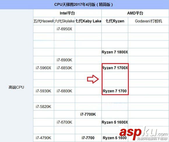 R7 1700X和1700在CPU天梯圖中的排名(點此完整版CPU天梯圖)