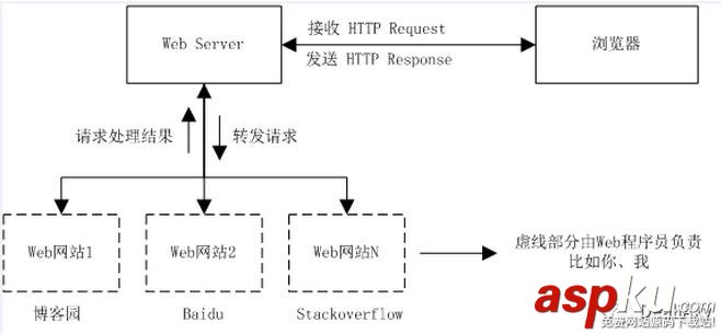 將請求轉發給指定Web站點程序(后者由Web開發者編寫,負責處理請求)