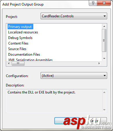 在添加項目輸出時,我們將ActiveX項目添加進來,在項目中選擇ActiveX控件項目(CardReader.Controls),Primary Out(基本輸出),如下圖7所示: