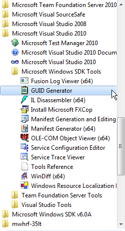 首先,為控件類創建一個唯一的GUID,這個編號將用于B/S系統的客戶端調用時使用,注意這里的GUID不能和AssemblyInf中的GUID相同,生成GUID的方法如下,