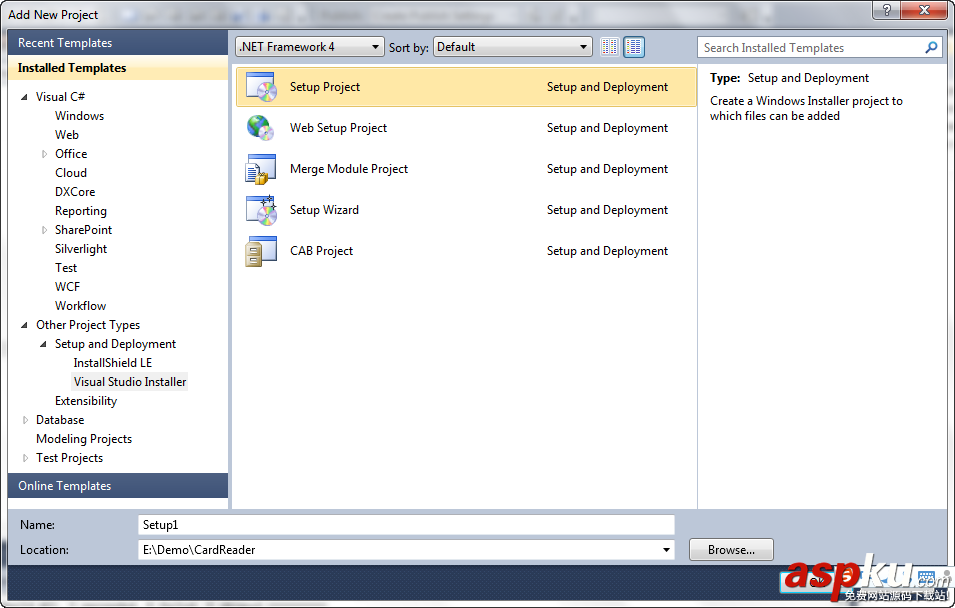 添加完文件后,設置Primary Output From CardReader.Controls的Register屬性為vsdrpCOM。設置完成后右擊安裝工程SetupCardReader,