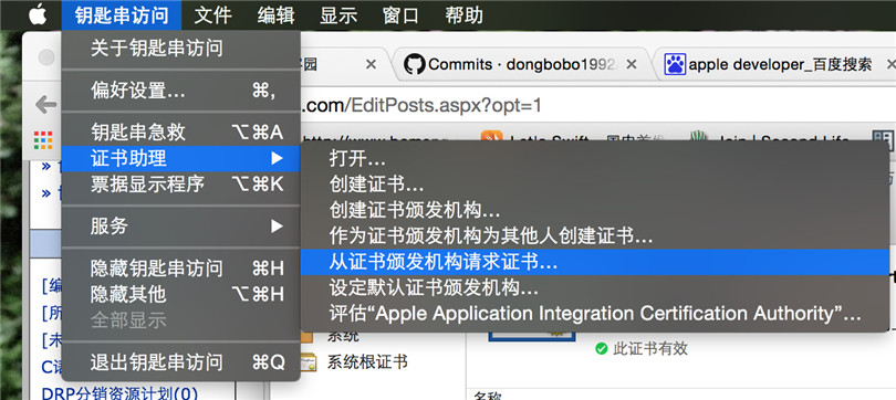 然后我們打開Mac上的鑰匙串,從證書頒發機構請求證書