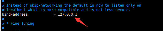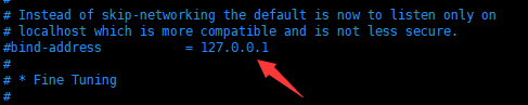 2. 在bind-address=127.0.0.1前加#注釋,或者直接刪掉這行