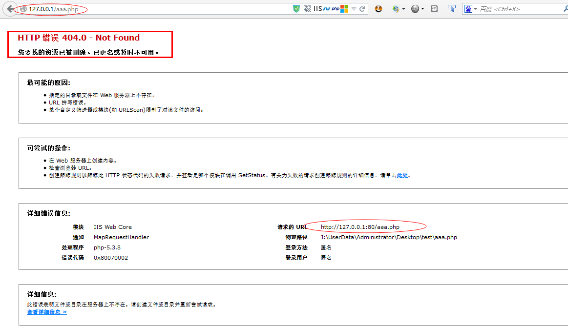 正常情況下,當訪問某個不存在的頁面時(比如:127.0.0.1/aaa.php),此時,iis服務器發現aaa.php這個文件并不存在,所以,應該會請求404.php