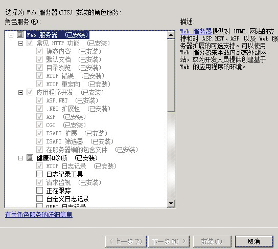 角色服務(wù) 在這里面可以看到 http重定向 是否安裝 如果沒有安裝可以在上面點(diǎn)一下添加角色服務(wù)中進(jìn)行安裝(不需要安裝盤)