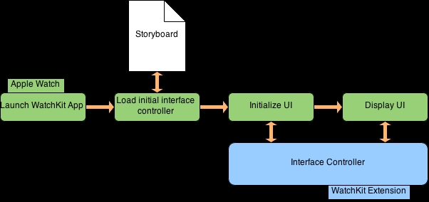 上面的每種方式都將初始化 WatchKit 應用程序和 WatchKit 擴展。根據上面不同的啟動方式,WatchKit 會利用相應的 storyboard 加載 scene,并請求 WatchKit 擴展初始化相應的 interface controller。