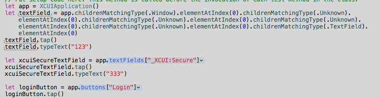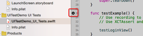 點擊testExample方法旁邊的播放按鈕,它就開始進行自動測試了,這時候你會看到app在自動操作