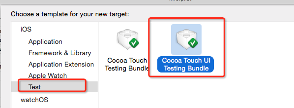 在Test選項中選擇Cocoa Touch UI Testing Bundle