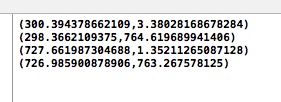 我依次觸摸左下角、左上角、右下角、右上角(我使用5s的模擬器)輸出坐標如下