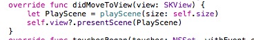 那么如何解決這個問題呢,也就是使寬變成從0到1024,而高變成從0到768。我的辦法是當進入GameScene時瞬間進入另一個Scene,而將另一個Scene的size設置成self.size。在工程中新建一個類,類繼承自SKScene,起名為PlayScene,然后在GameScnene中寫下以下代碼