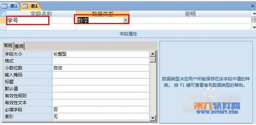 3、這樣就來到了表設計器。我們在左邊的這個字段名稱這一欄輸入字段的名稱,在數據類型這一欄點擊下列按鈕,在下拉菜單中,選擇 數字。