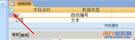 3、來到了設計視圖面板,我們在要設立主鍵的字段的右邊,也就是紅色箭頭的位置右鍵單擊
