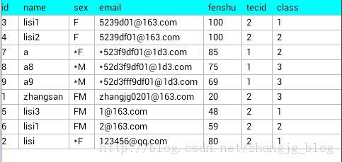 1 2 sqlite> replace into student (id, name, sex, email, fenshu, tecid, class) values ('2', 'lisi', '*F', [email protected]', '80', '2', '1');執行完這條語句之后, student表中的數據變成下圖所示: