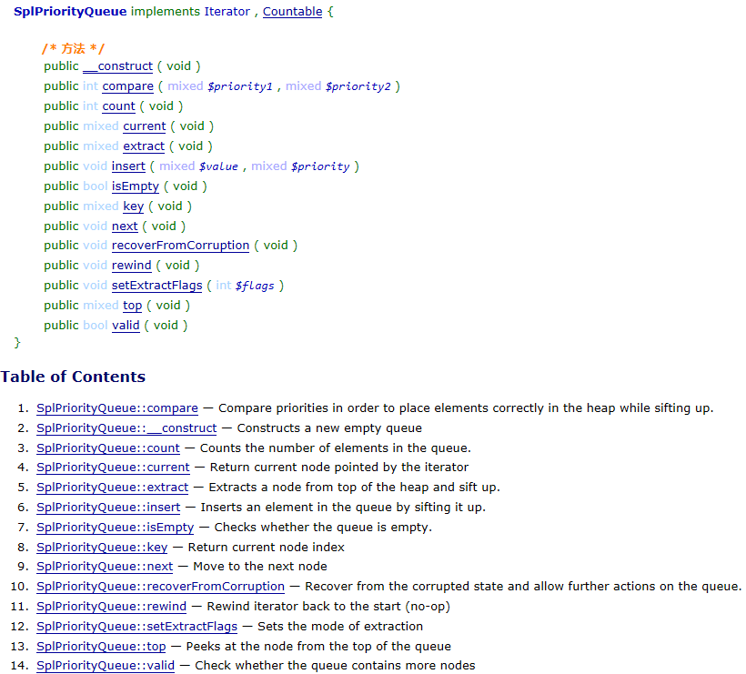 SplPriorityQueue的類摘要如下: