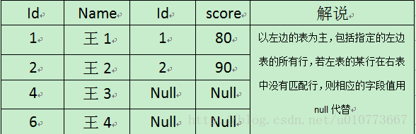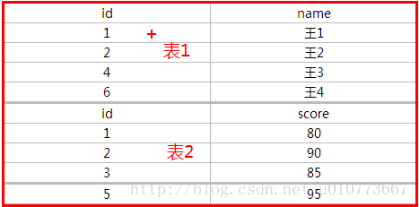 SQL語句:select table1.id,table2.score from table1 inner join table2 on table1.id=table2.id
