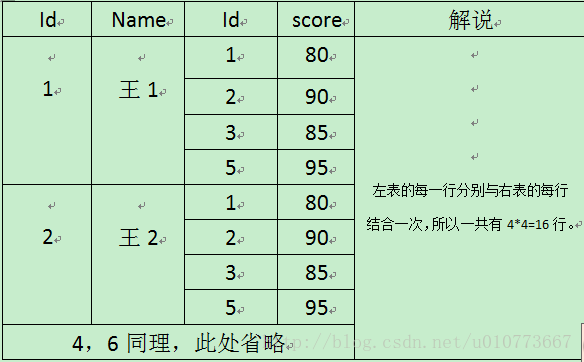 SQL語句:select * from table1 cross join table2 on table1.id=table2.id