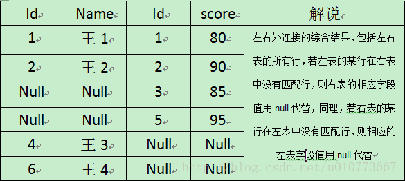 SQL語句:select * from table1 full join table2 on table1.id=table2.id
