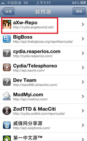 或者在Cydia中添加源:http://cydia.angelxwind.net/如圖中紅框所示
