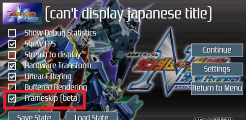 此時(shí)我們可以點(diǎn)擊小箭頭進(jìn)入設(shè)置,開(kāi)啟“Frameskip”(跳幀)