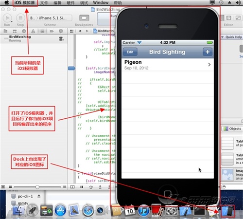 iOS Simulator是個模擬器,但并非仿真器。這兩者的區(qū)別是什么呢?模擬器會模仿實際設備的行為。iPhoneSimulator會模仿實際的iOS/iPad設備的真實行為。但模擬器本身卻使用了Mac上的各種庫(如Quicktime)進行渲染以便效果與實際的iPhone保持一致。此外,在模擬器上測試的應用程序會編譯為x86代碼,這是模擬器所能理解的字節(jié)碼。實際的iPhone設備使用的則是ARM代碼。