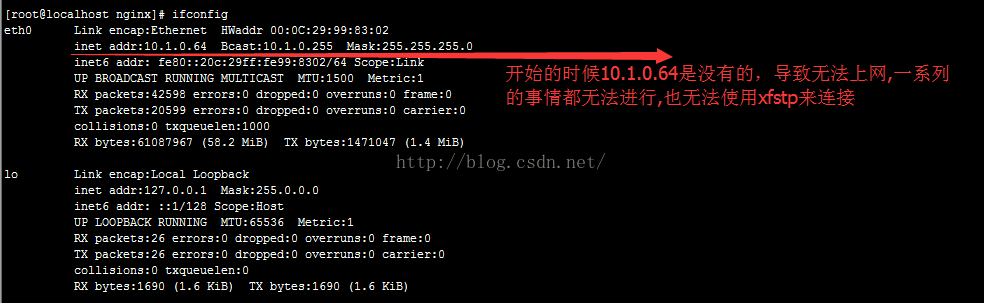 就好了。2.但是下載如此版本出現一個問題,使用ifconfig命令來查看系統的ip地址,一開始出現的是如下情況,沒有ipv4地址,如下圖