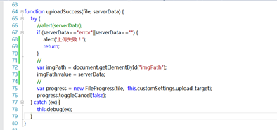 頁面初始化時,可以指定許多設(shè)置,并對上傳成功的事件進(jìn)行重載,data表示服務(wù)器端的響應(yīng)