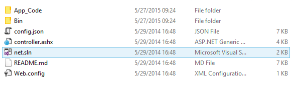 在net目錄下,我們只保留controller.ashx與config.json就可以了,同時把App_Code中的代碼拷貝到項目中的App_Code中,同時添加對bin目錄下Json.NET程序集的引用,config.json文件定義了一些設置,配置上傳文件的一些要求以及上傳到服務器保存的路徑,在web.config文件中可以看到項目框架應至少為4.0