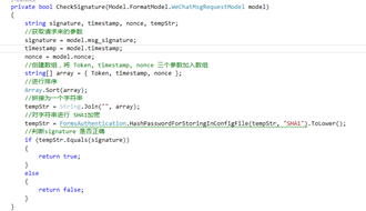 調(diào)用微信接入時驗證的方法,不過參數(shù)需要小改動一下,采用新建的數(shù)據(jù)模型