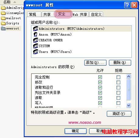 4.這樣,你在XP下NTFS分區文件夾右鍵,也能看到如WIN2000一樣的"安全"選項卡了