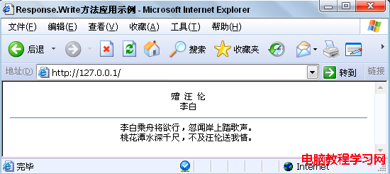 Response.Write “桃花潭水深千尺,不及汪倫送我情。<br>”