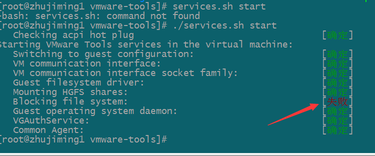 第九步: /etc/vmware-tools/services.shstart